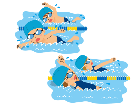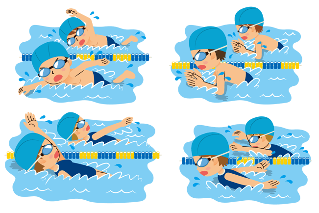 4泳法のレベルアップのため、クロール・背泳ぎ・平泳ぎ・バタフライの4泳法が泳げることが前提です。